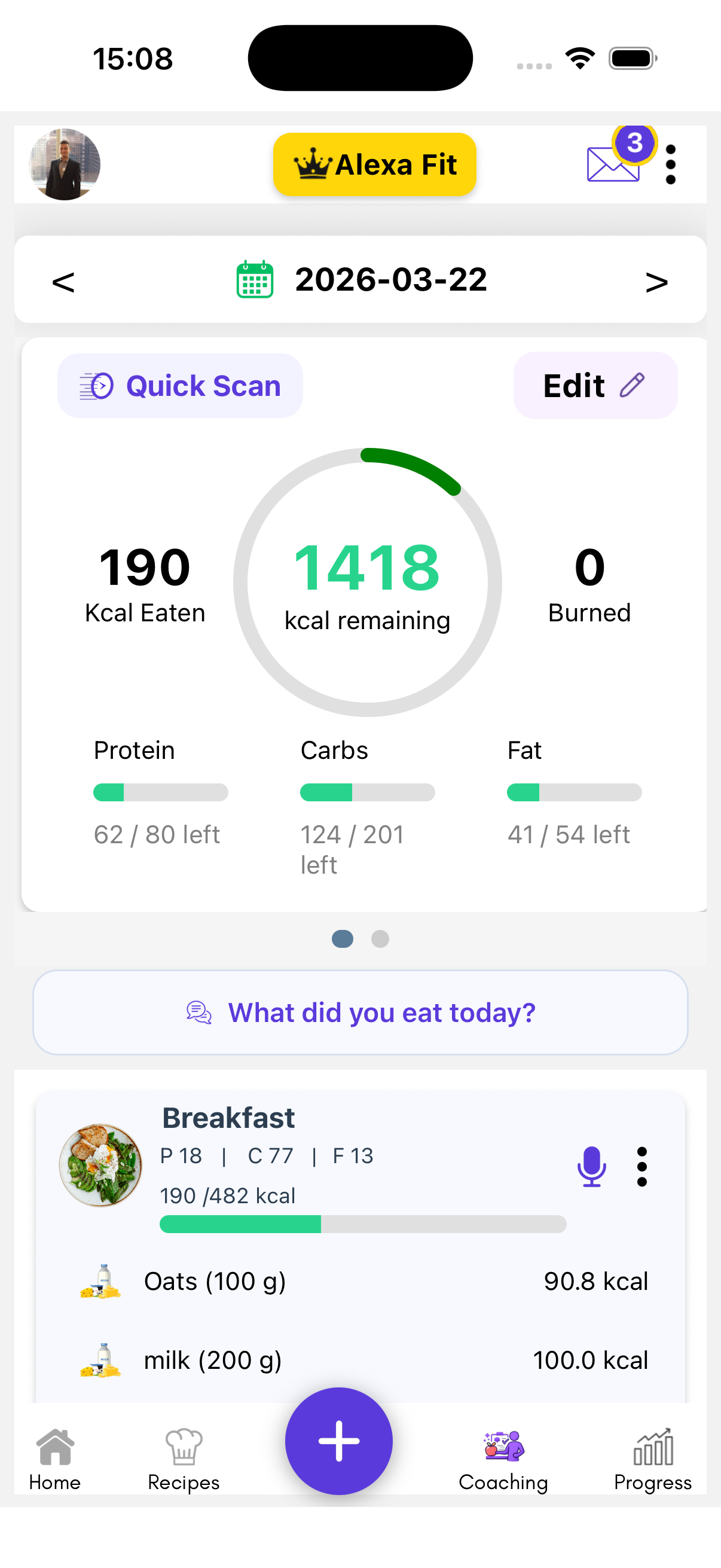 AlexaFit helps you log meals, track calories, and stay consistent with real accountability for weight loss and healthy eating.